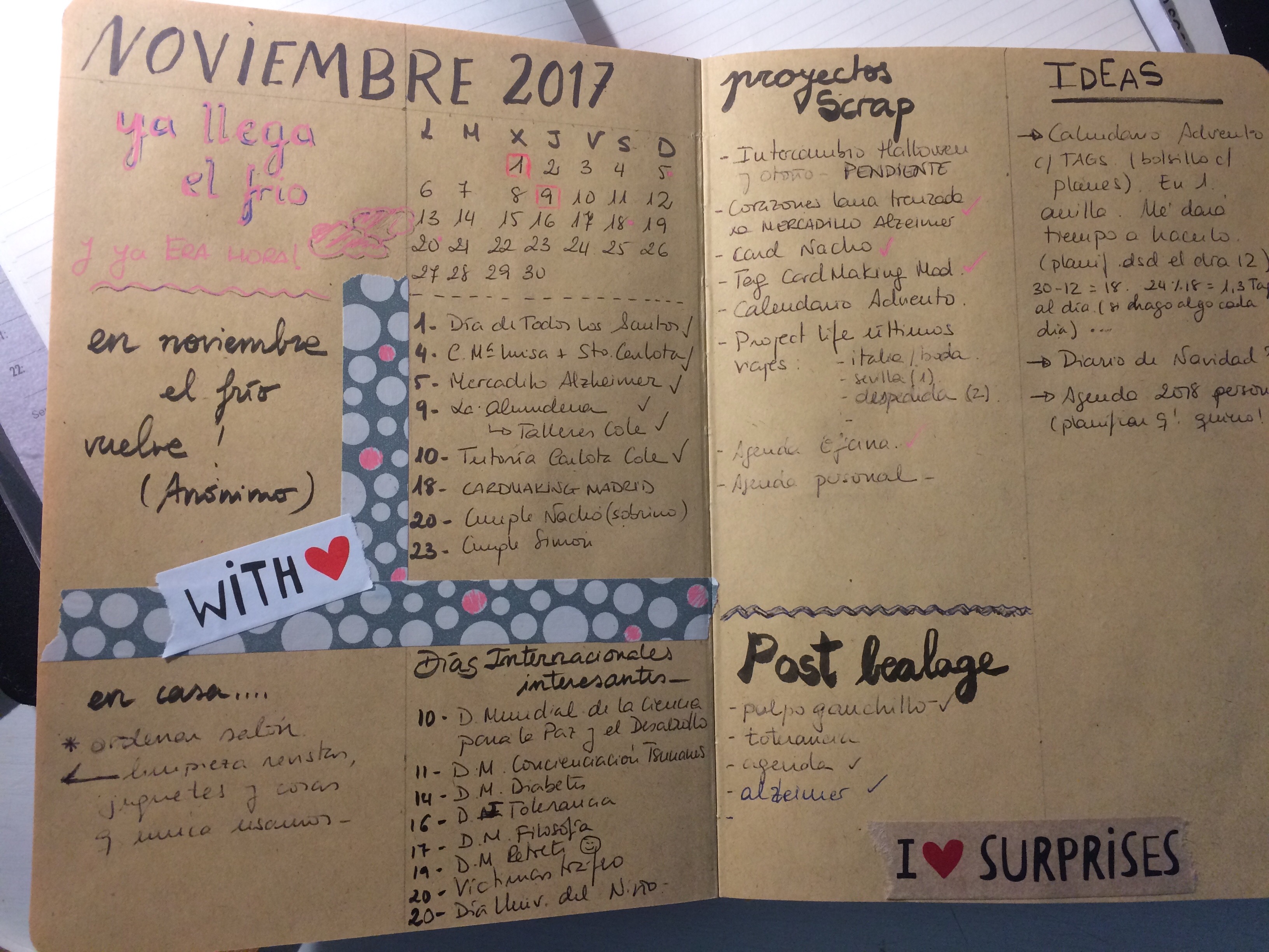 Me encantan las listas, los bullets, las agendas y la organización en general y como tal en Noviembres empecé una especia de bullet journal a mi aire con agendas, planes,…