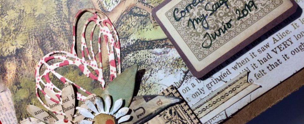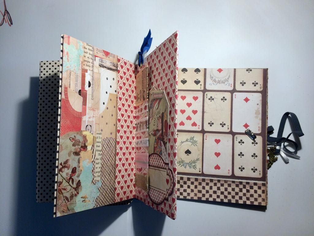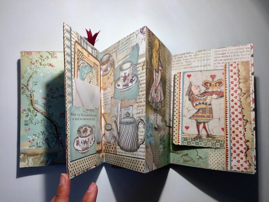 Un mini álbum en cartón de encuadernar estilo acordeón por las dos caras decorado y alimentado de chuches escraperas con la Colección de Alícia en el País de las Maravillas de Stamperia. Estos papeles son increíblemente bonitos!
