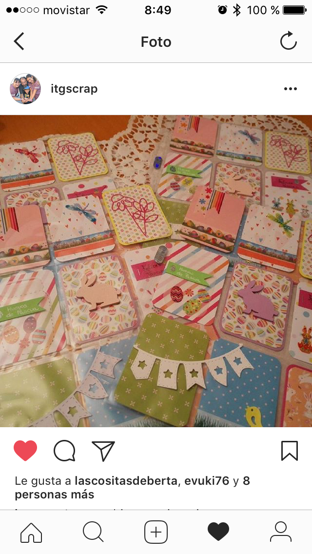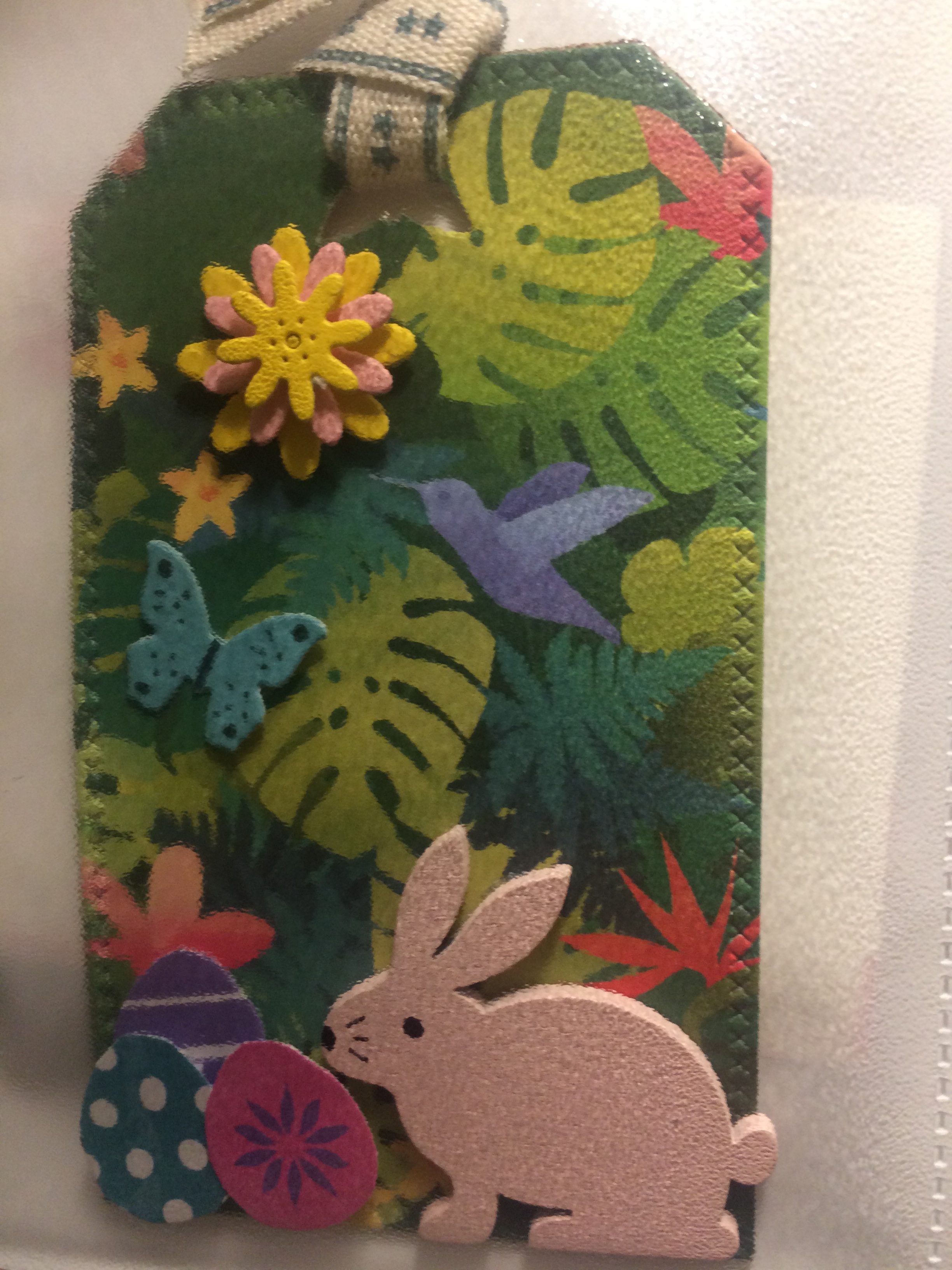 NIEVES ha usado un papel de lo más vistoso y me encanta el troquel de tag con ese pespunte en cruz! El conejo, igual que el de Ines, demuestra que al final compramos las mismas cosas porque son las que nos gustan! Yo también los tengo!
