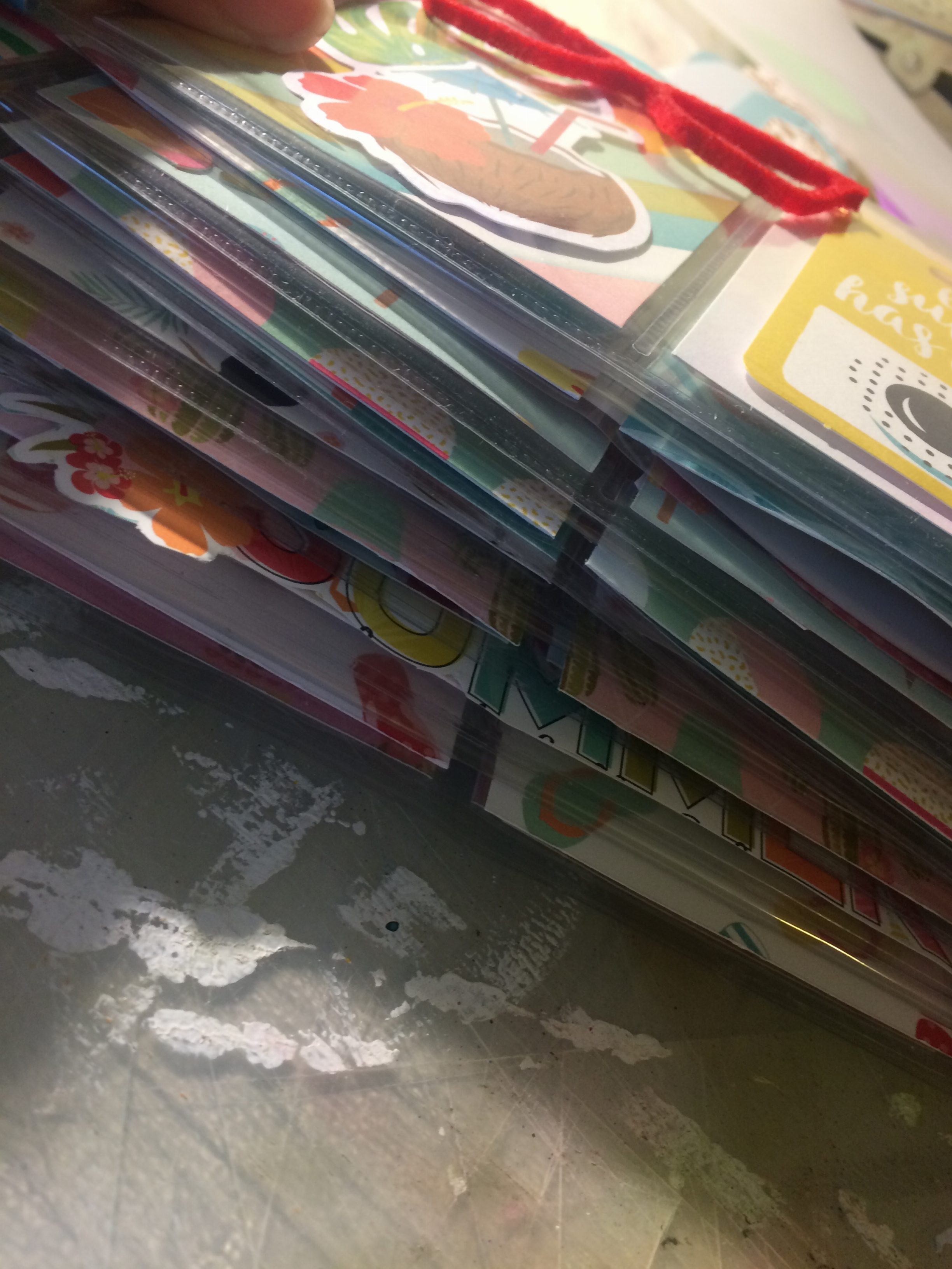 De momento puedo decir que somos 4, y he hecho 4 que uno me lo guardo para mí! Un pocket letter supone hacer 9 atcs decoradas, lo cual significa que he hecho muchas (36).He utilizado unos papeles que me han encantado con un colorido y unos dibujos tan alegres que estoy guardando como tesoros los trozos que me han quedado!