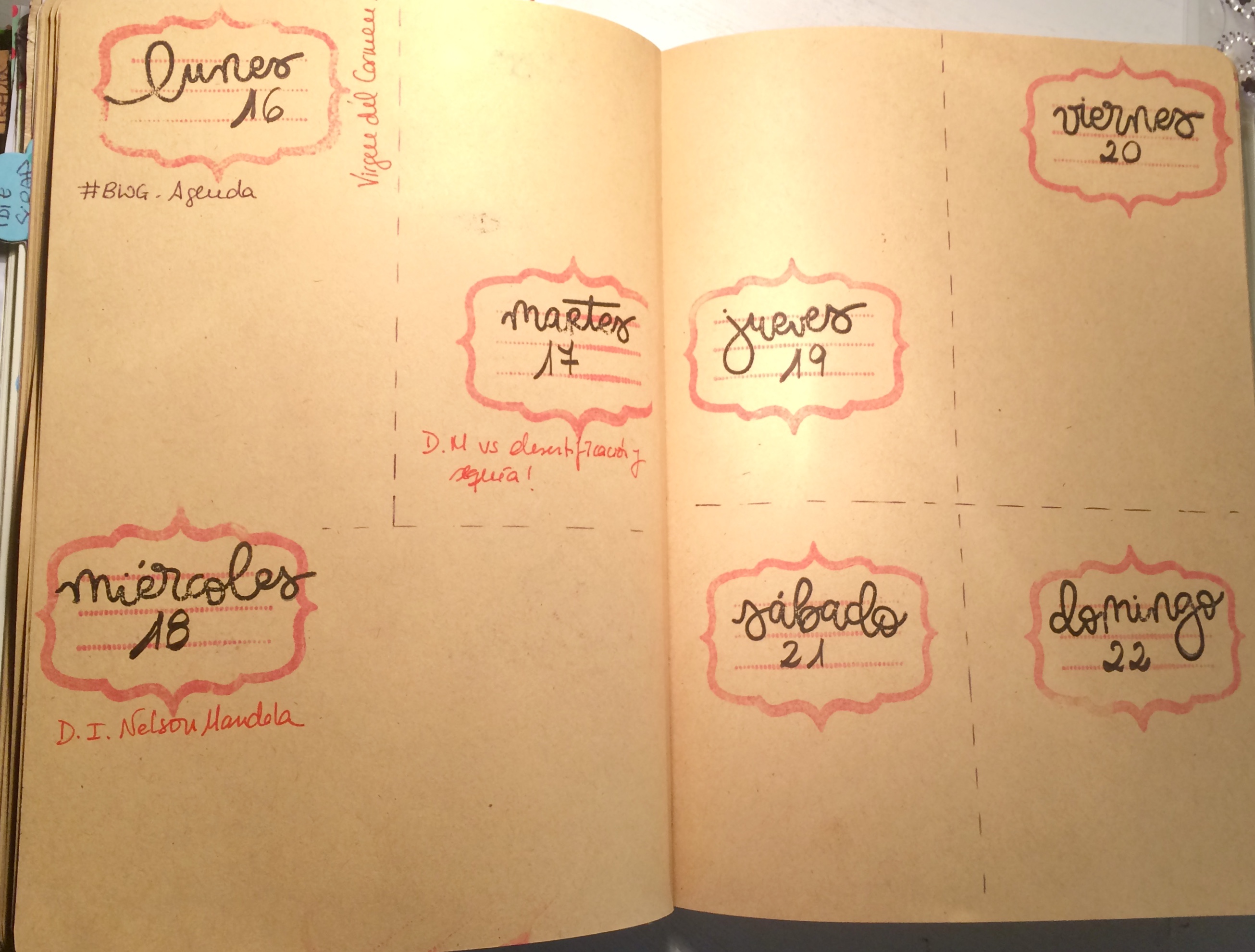 Esta semana que he preparado es bastante más limpia en cuanto al fondo ya que el sello que he usado para identificar los días es bastante aparatoso por sí mismo!