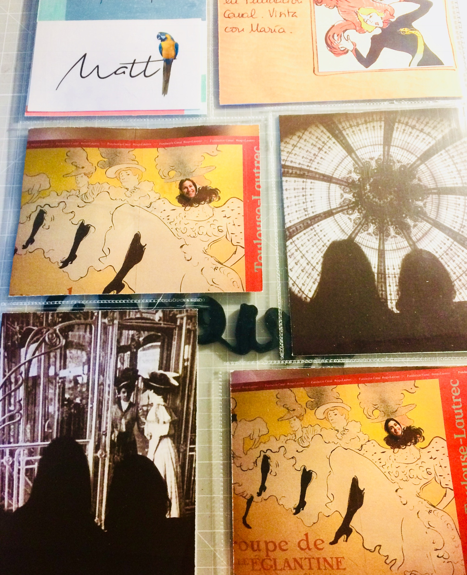 Las fotos en blanco y negro son las sobras de nosotras, como espectadoras, sobre una pared en la que se proyectaban imágenes de la época. Me encantó la idea y pensé que era original aunque luego he visto en internet que no he sido la única que lo pensó! Jeje