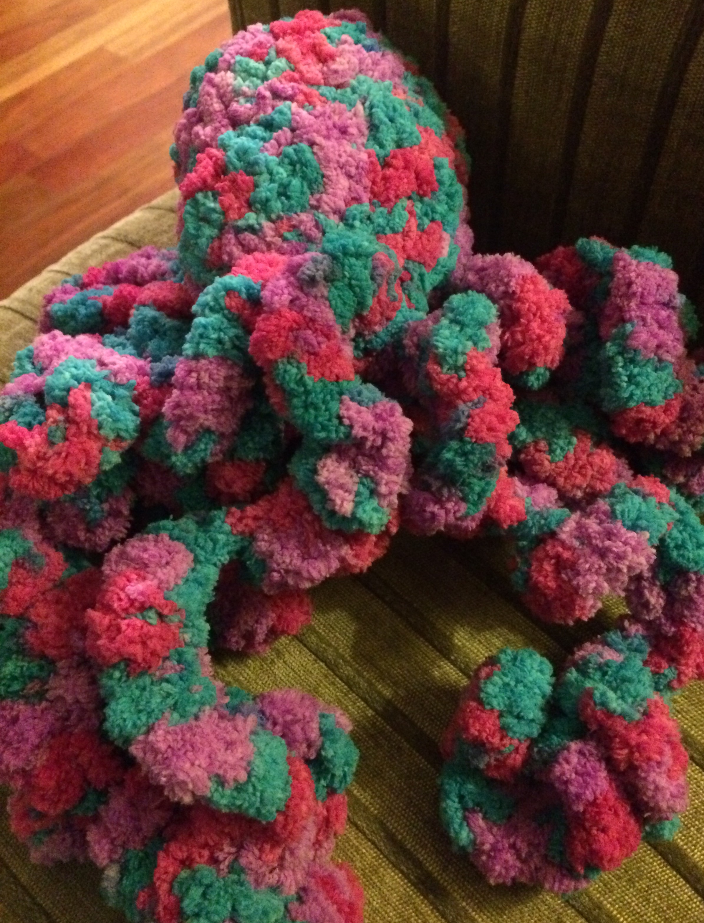 Este primer pulpo, a mí aire, se queda en casa para mi niña, y el pequeñajo ha pedido otro para él, pero lo mismo tengo que preparar, si con la lana adecuada me quedan bien, alguno más para bebés que vienen en camino, no prematuros esperamos, ya que es monisimo!!!!!