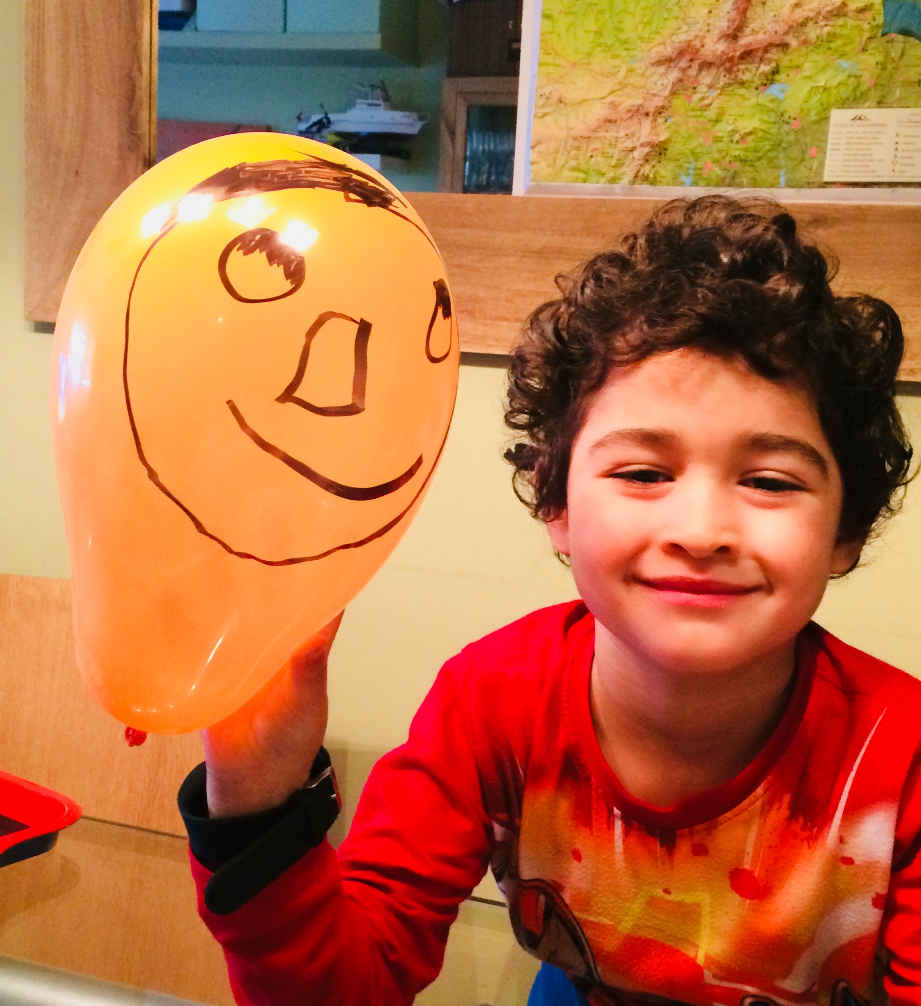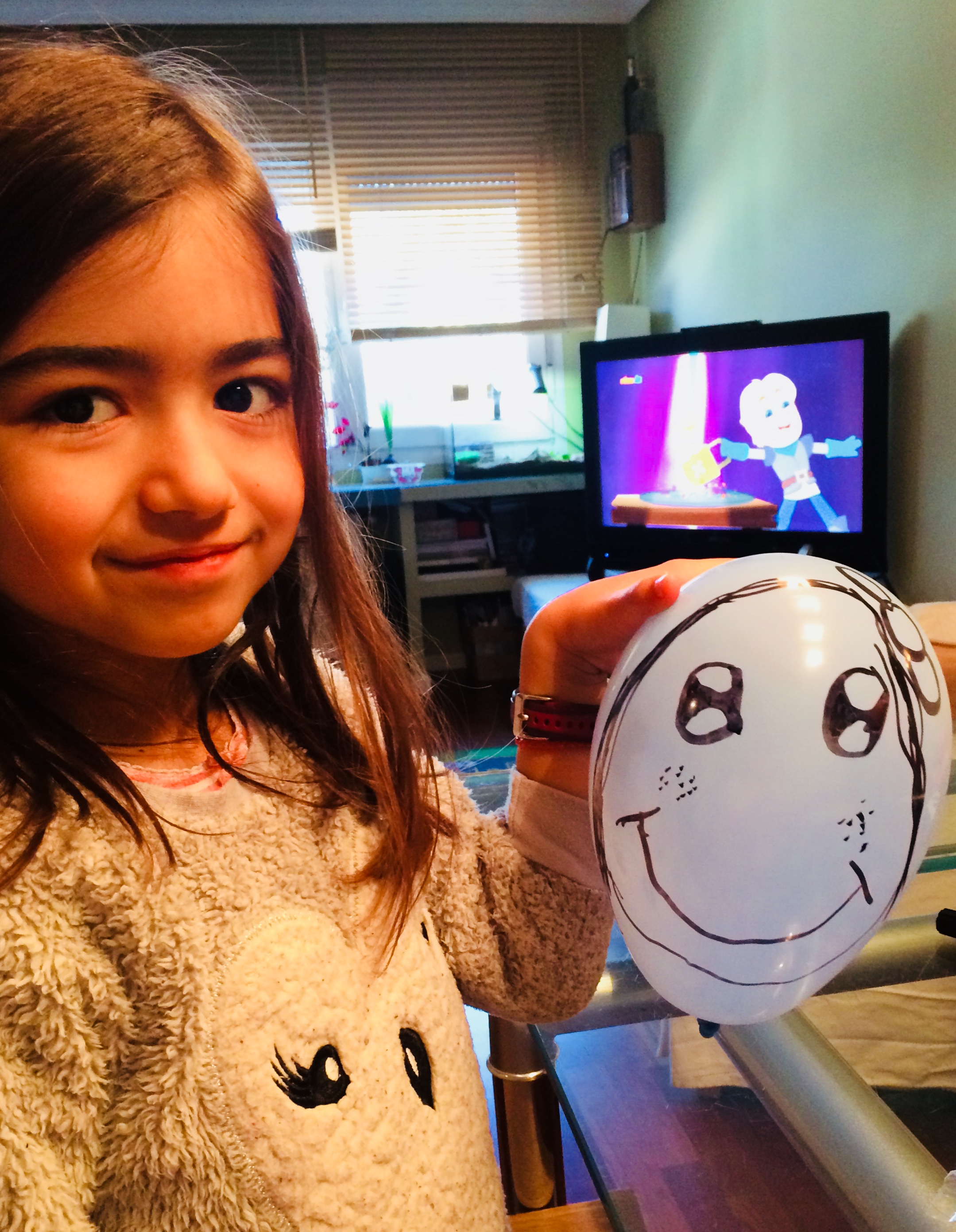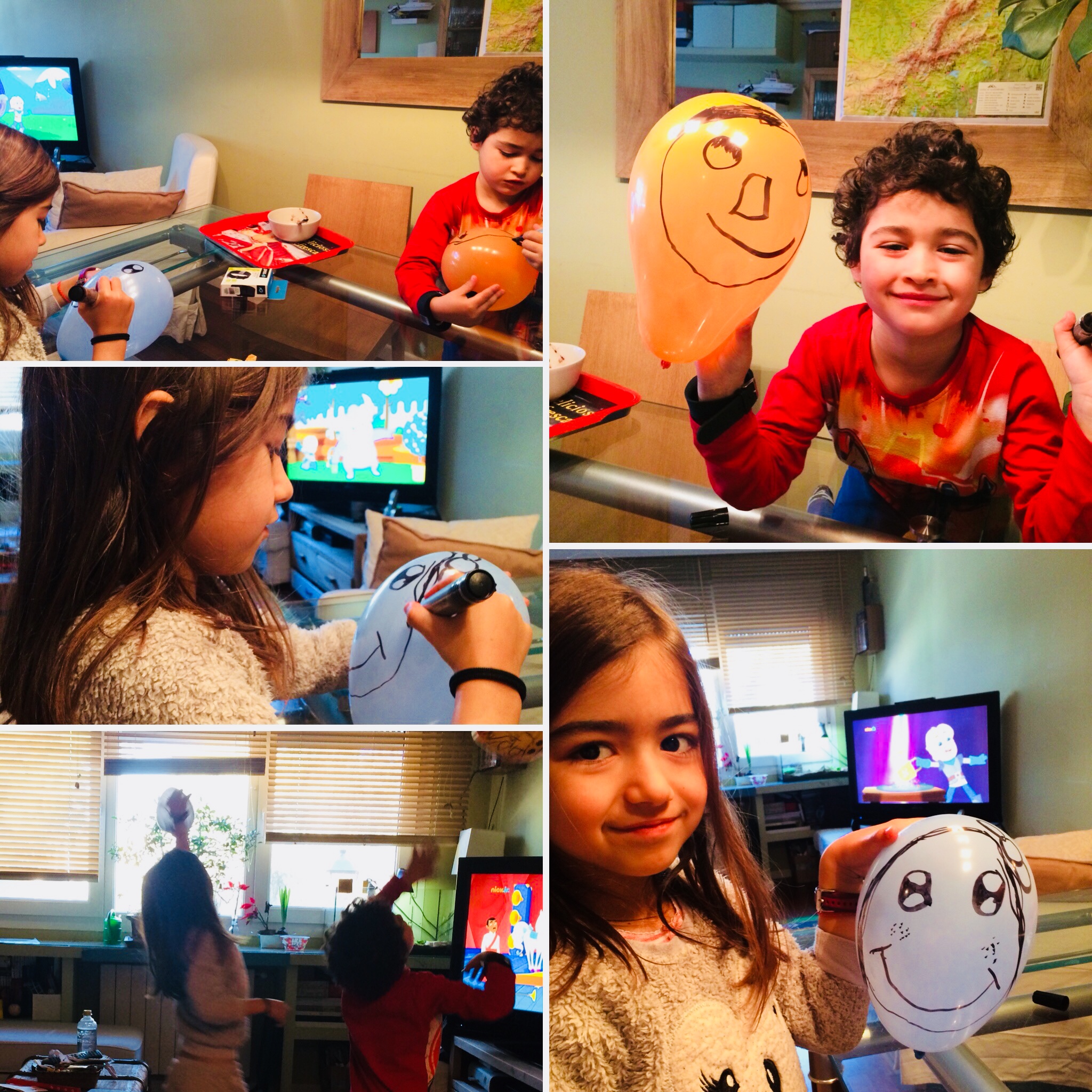 Reconozco que mis hijos son fáciles porque se entretienen con casi cualquier cosa. Lo pasan fenomenal con un rotulador permanente y un par de globos! Quien, con niños, no tiene estos recursos tan fáciles por casa? Si les dejara solos y supieran inflar globos, me crearían un país de globos en casa (alcalde, señora,perro,policía,bombero,niños, pastelero, camarera…..). Por suerte para mi, había 2! Los otros siguen guardados!!!!!