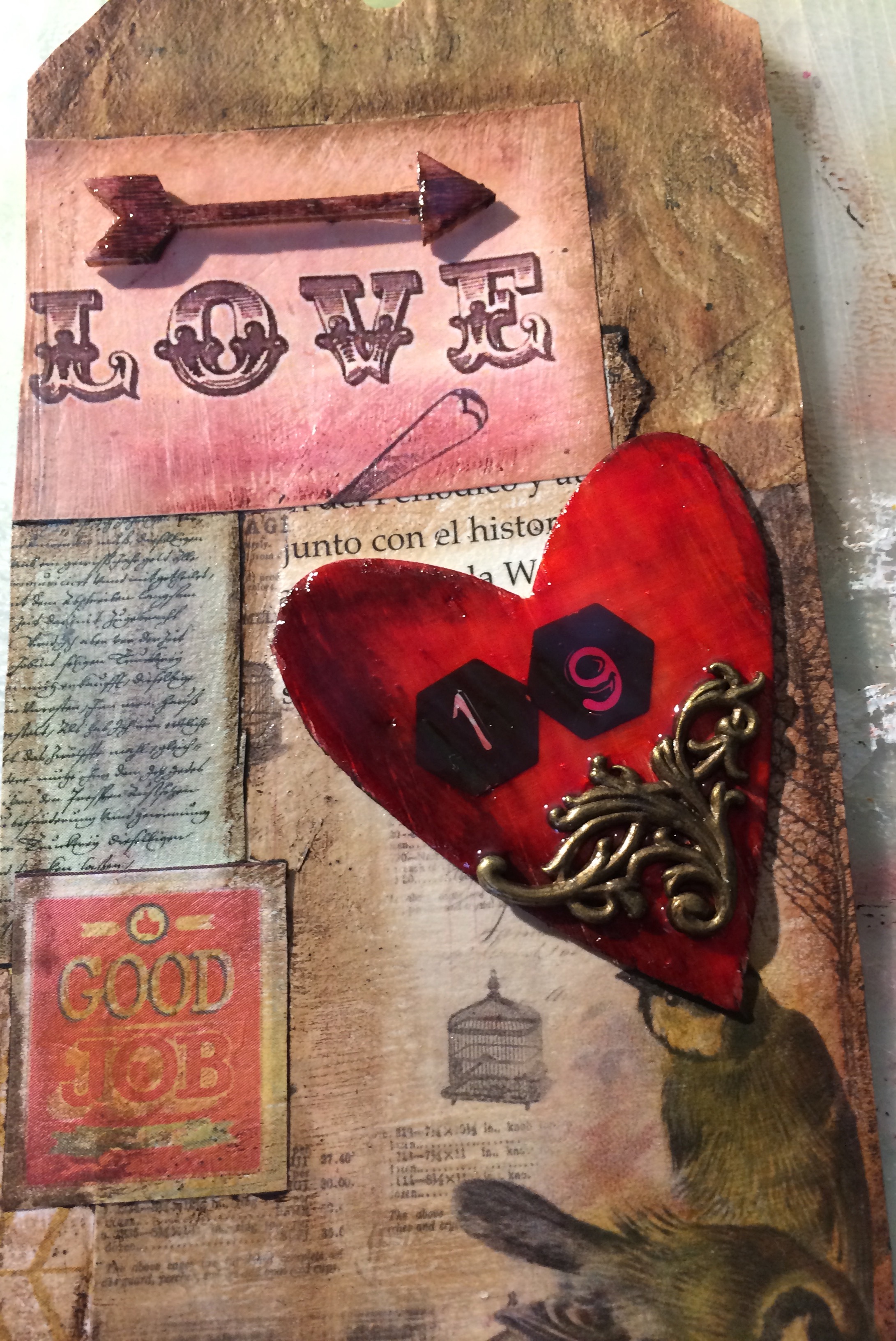 Que no se diga que en casa del herrero….. porque él ha tenido Tag de felicitación! Al estilo vintage esta vez (es que para hombre es muy fácil pasarse de tonos y a mí si no me queda todo muy femenino)!