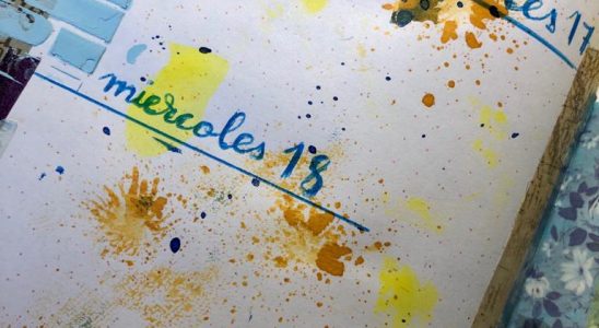 Bueno, estoy muy mix media y eso se nota en mi agenda, uso más pinturas, más pigmentos y más pasta con stencil, aunque esta semana la empecé pensando en washitape….…