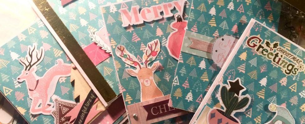 Como tengo muchos planes, hago cosas por turnos, y con una de las hojas he hecho un grupo de 5 tarjetas de navidad! Los adornos están mezclados, no soy capaz de usar solo una cosa, me encanta mezclar!