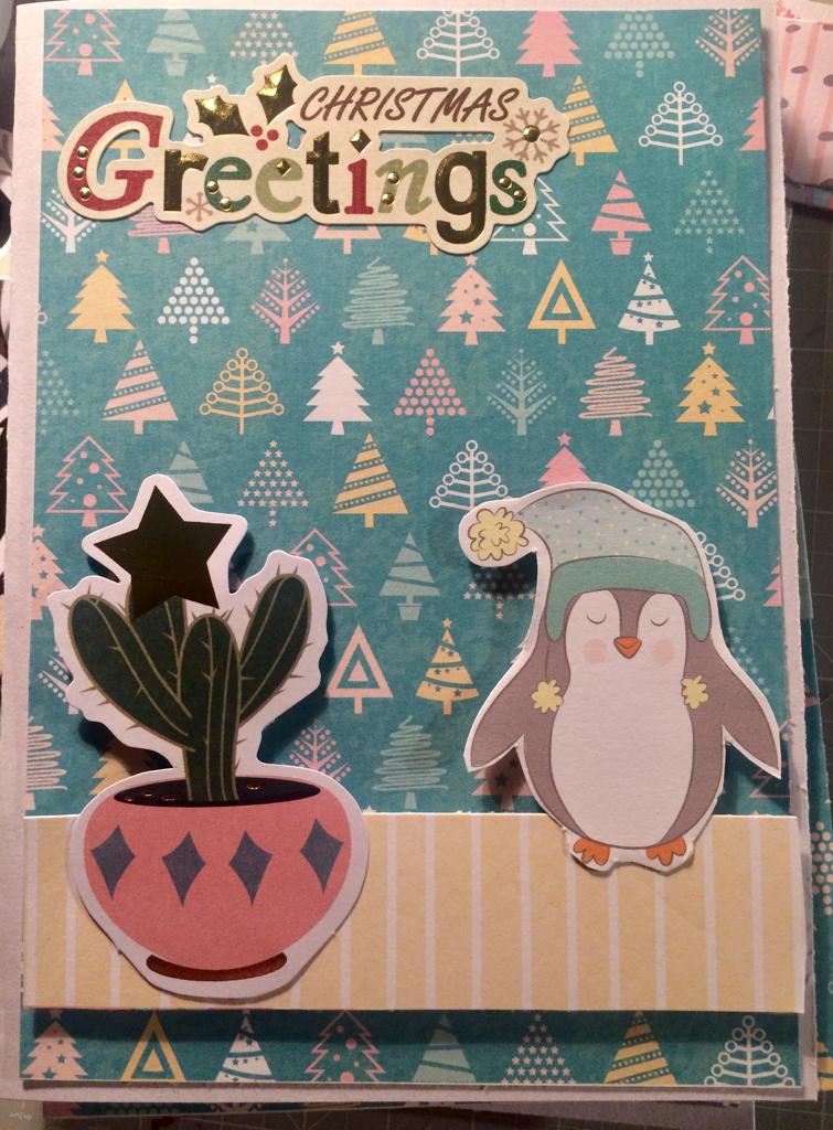 Como tengo muchos planes, hago cosas por turnos, y con una de las hojas he hecho un grupo de 5 tarjetas de navidad! Los adornos están mezclados, no soy capaz de usar solo una cosa, me encanta mezclar!