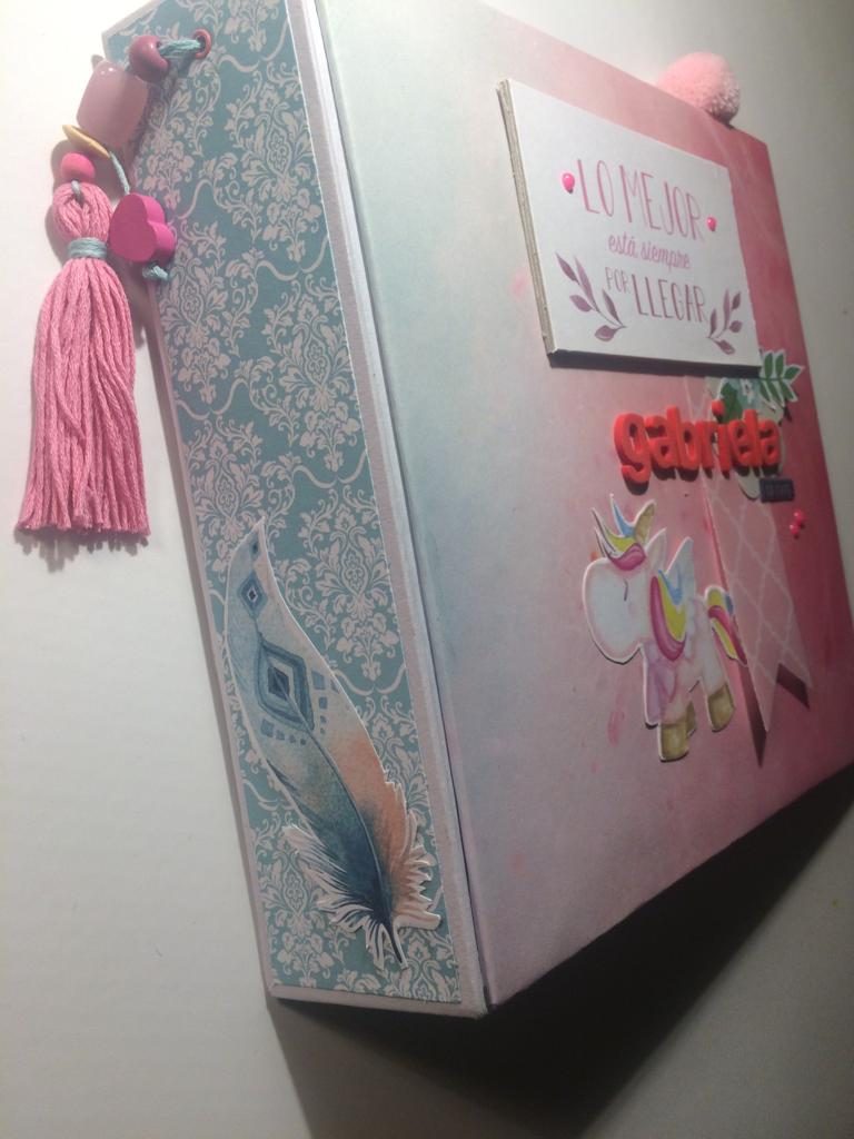 Creo que ya he manifestado que me encanta hacer álbumes en espina para bebé, con los papeles de Amelie Orita. Y como no me canso, aquí va otro!