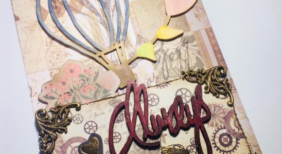 Siguiendo el reto de scraperassinfronteras para San Valentin, en el que tenia que hacer un proyecto con corazones, yo he preparado esta tag: Un fondo de madera y unos elefantes…