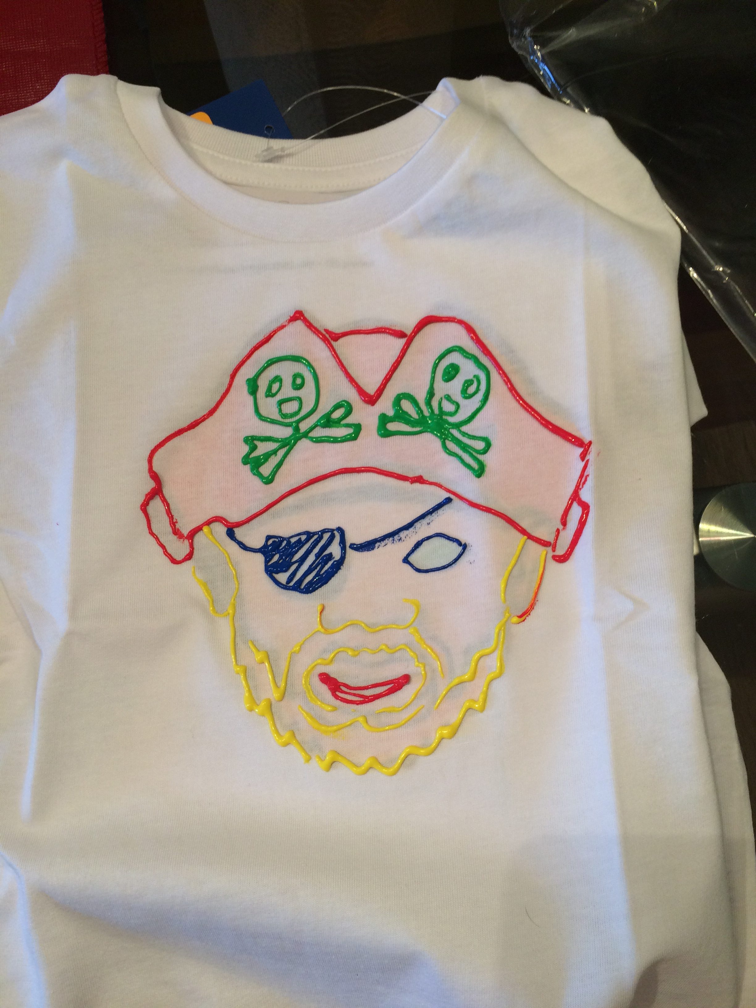 Con una base de cartón y un dibujo improvisado como medio guía…. un corazón y un pirata, y listas para pintar!