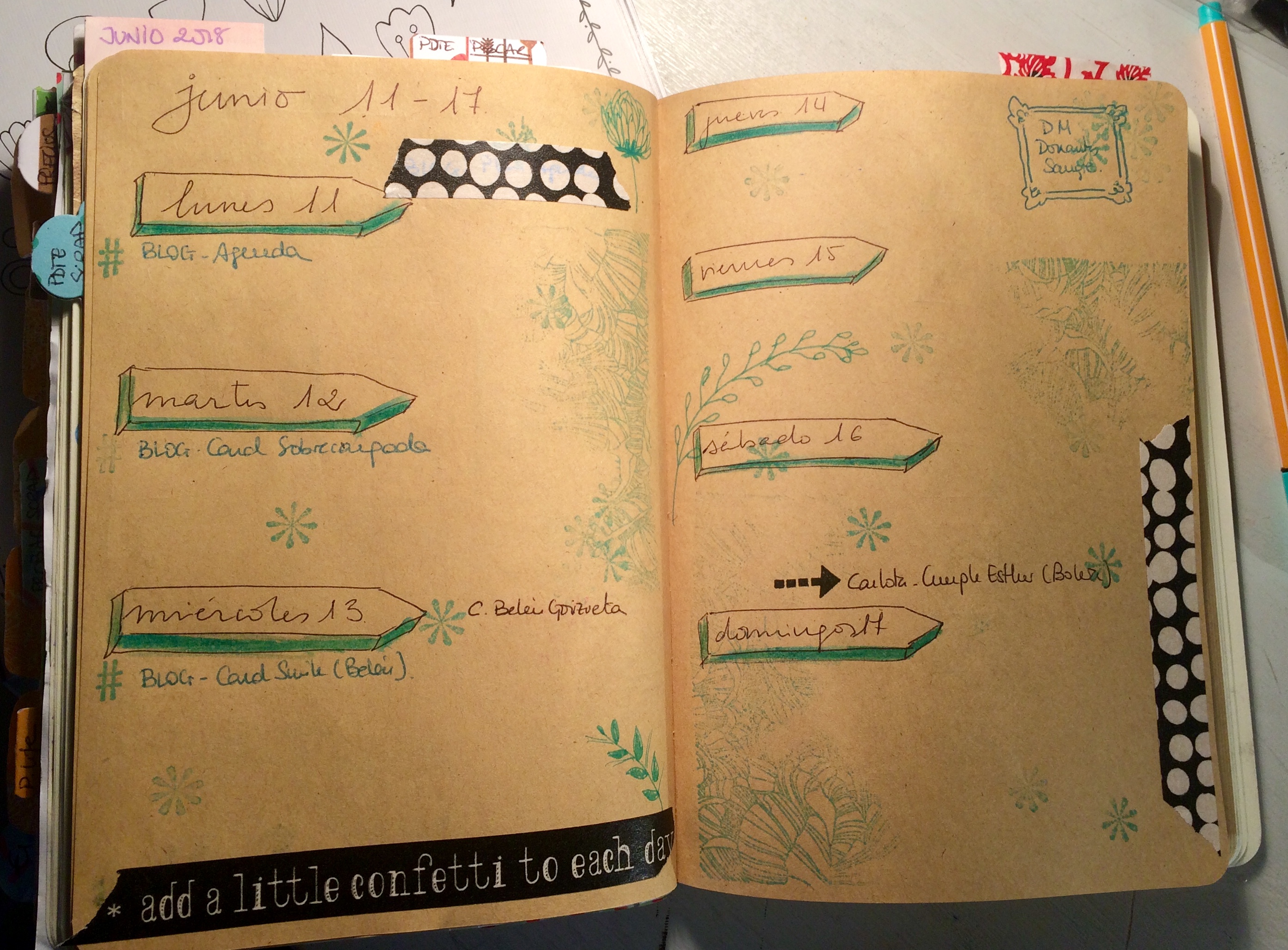 Semana vista repitiendo….. elementos decorativos dibujados y sellos! Un tono verde-azul turquesa…
