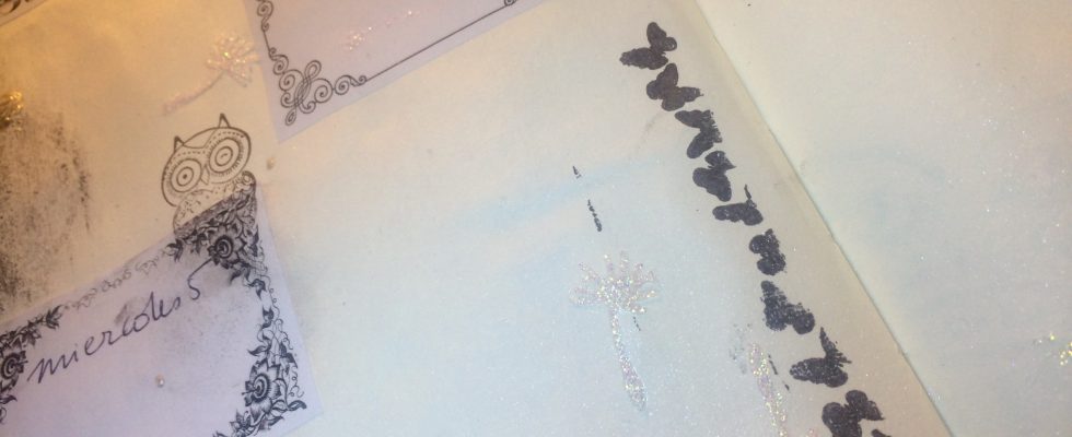 En esta primera seman, me centro en blanco y negro, las pegatinas son cuadradas, con marcos y le he puesto unos cantos sellos en negro, negrísimo, y luego le he metido stencil y nuvo brillante, en forma de manchas, es el de tus y lo que se me ha ido ocurriendo!