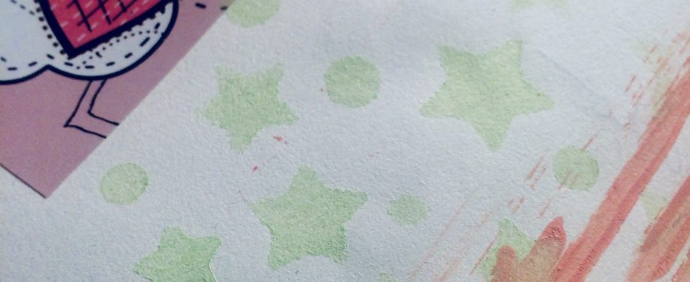 Tienen unos tonos muy monos, y he copiado esos tonos en las acrílicas que he usado con stencil y esponja! Stencil de código de barras y estrellas….
