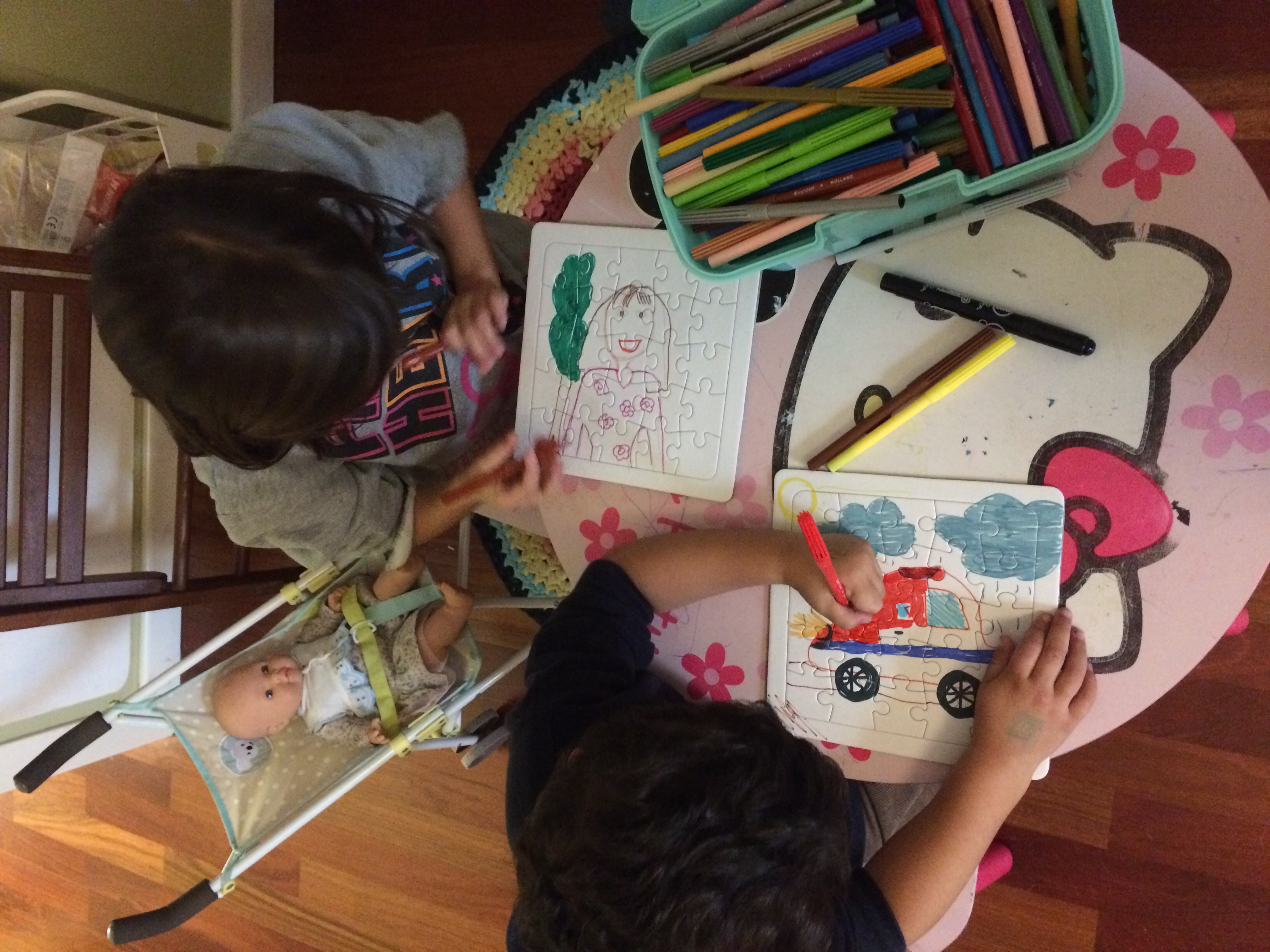 Han estado bastante rato entretenidos pintando y luego haciendo y deshaciendo los puzzles. Era el objetivo, así que…. CONSEGUIDO!