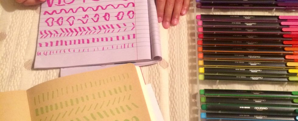 Nos hemos hecho con unos rotuladores de punta de pincel. Qué emoción! Pero unos corrientes para probar! Y hay que probarlos….!