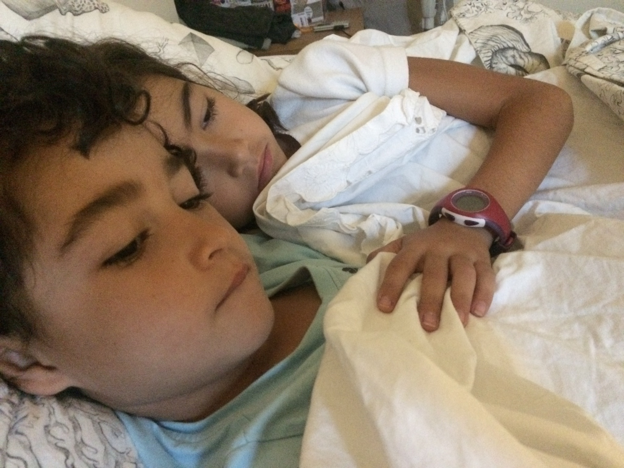 • me encanta cuando ya por la mañana aunque sea temprano se meten en mi cama y me abrazan, uns veces se duermen un poco y otras piden que les ponga la tele, pero esos abrazos mañaneros son geniales