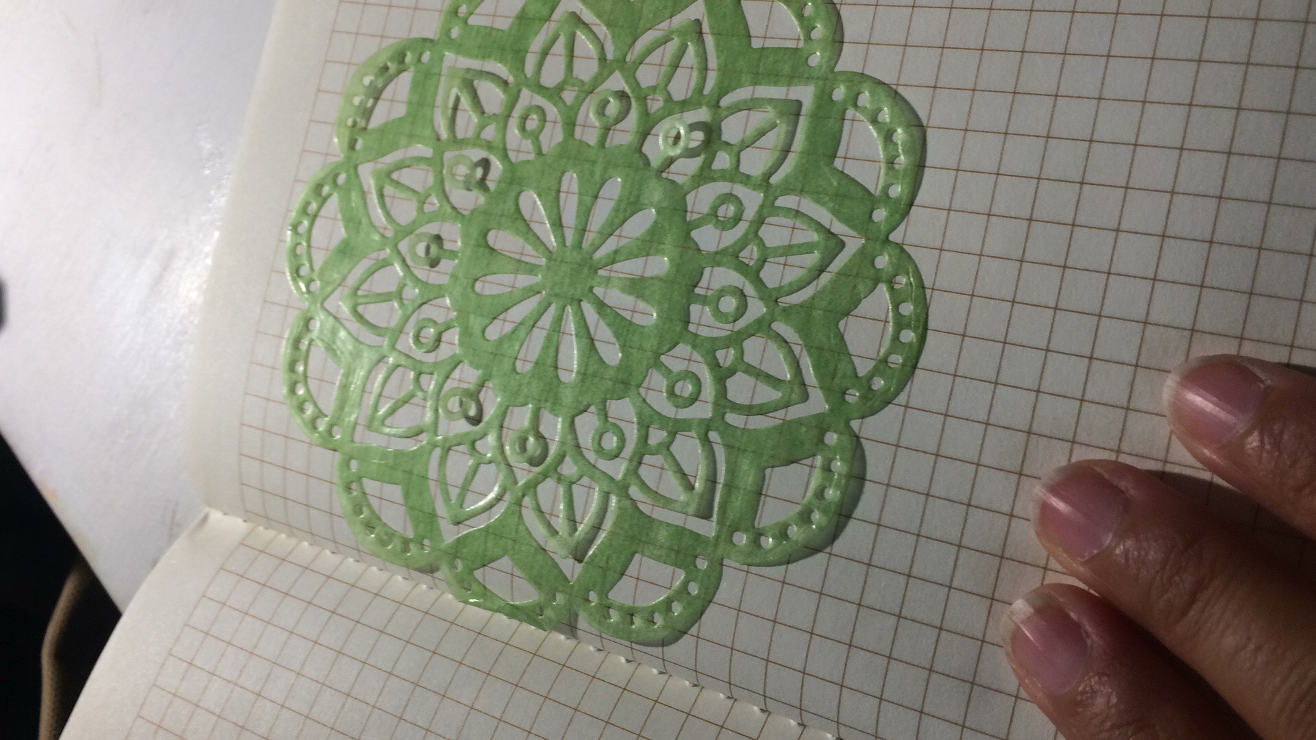 Mira qué el troquel se las traía…… pero queda precioso, fino y transparente, se pega a la hoja casi como si fuera un dibujo de la misma!