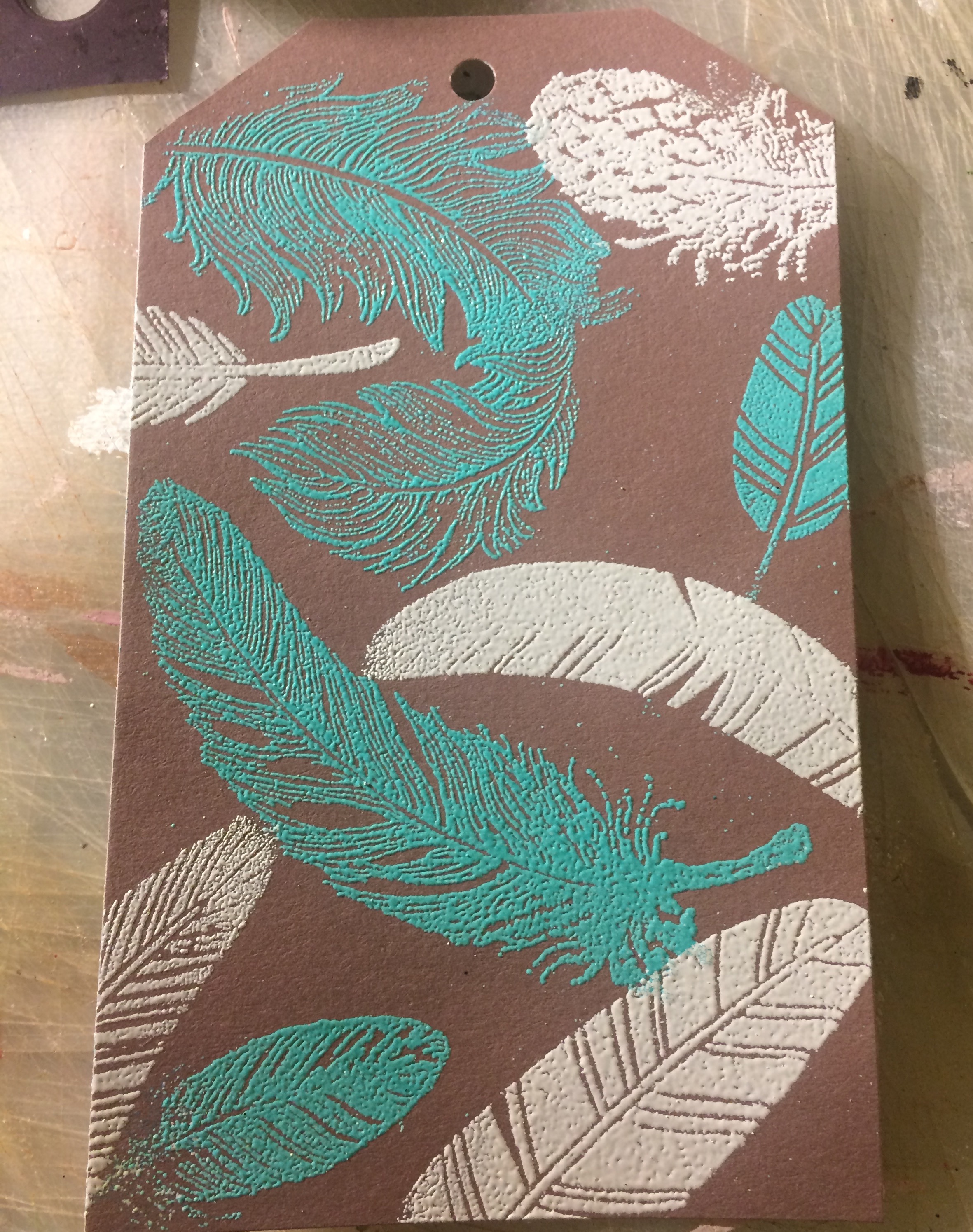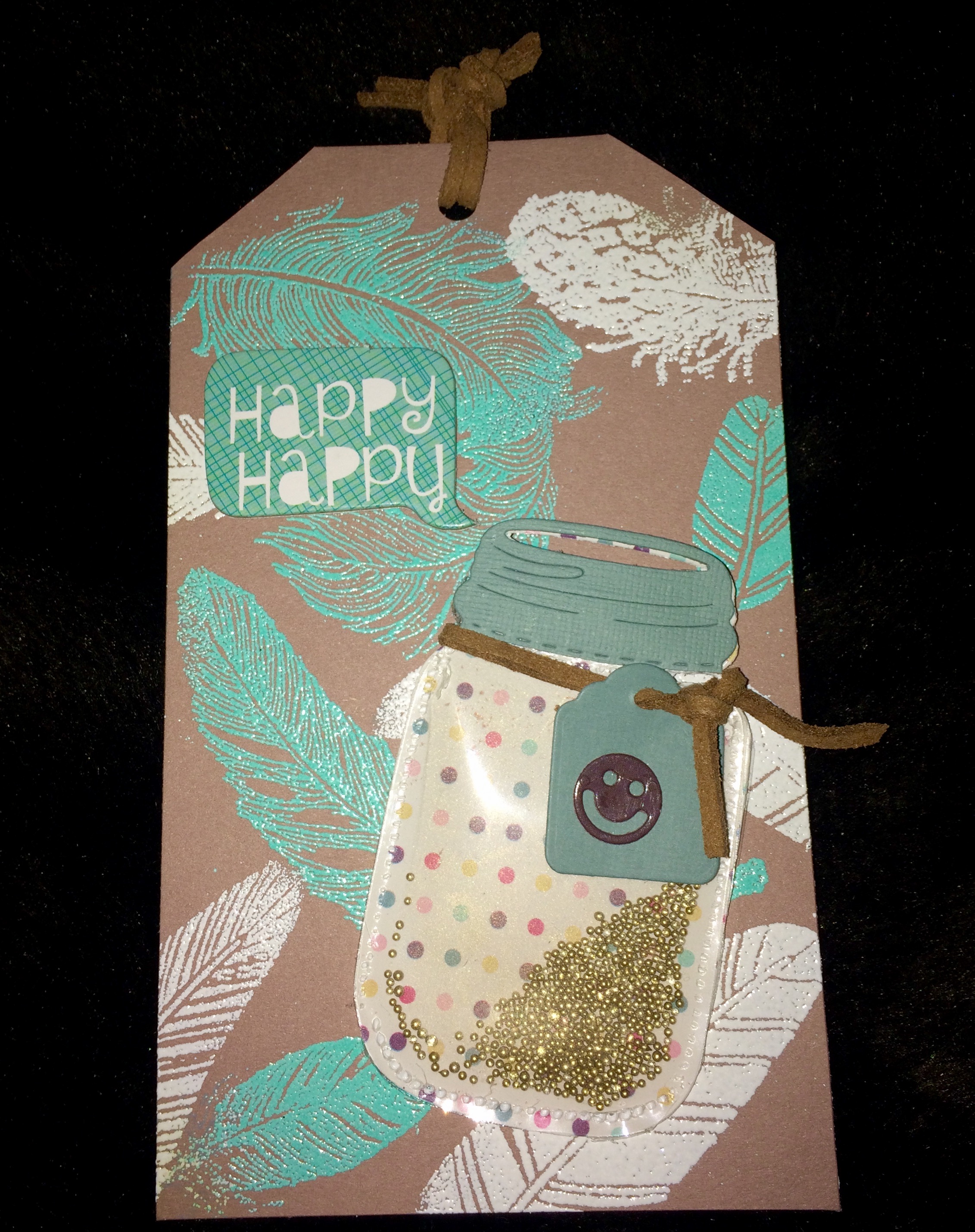 Mi aportación es una tag, con fondo de sellos y embossing y además es Shaker…. usando mi Fuse!