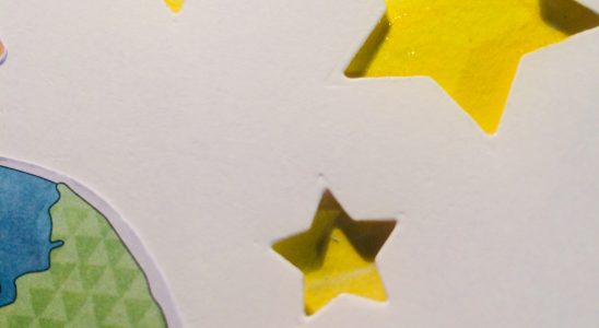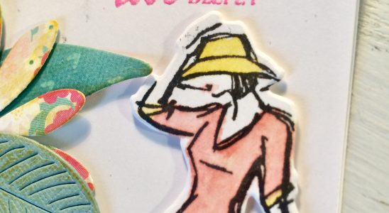 Esta tarjeta de cumpleaños tiene un poco d3 truco, ya que son unos papeles acuarekabkes de Tiger que tienen dibujos, con fósil y en blanco, así que entintar es fácil…