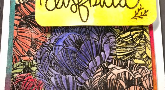 Hacía tiempo que quería probar acuarelas y embossing en caliente en sellos grandes…. Qué te parece la potencia de este fondo? Demasiado fuerte?